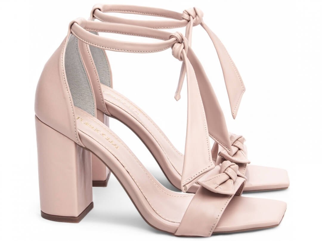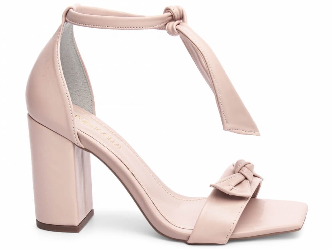 Sandália Feminina Nude Salto Grosso Casual Luxo