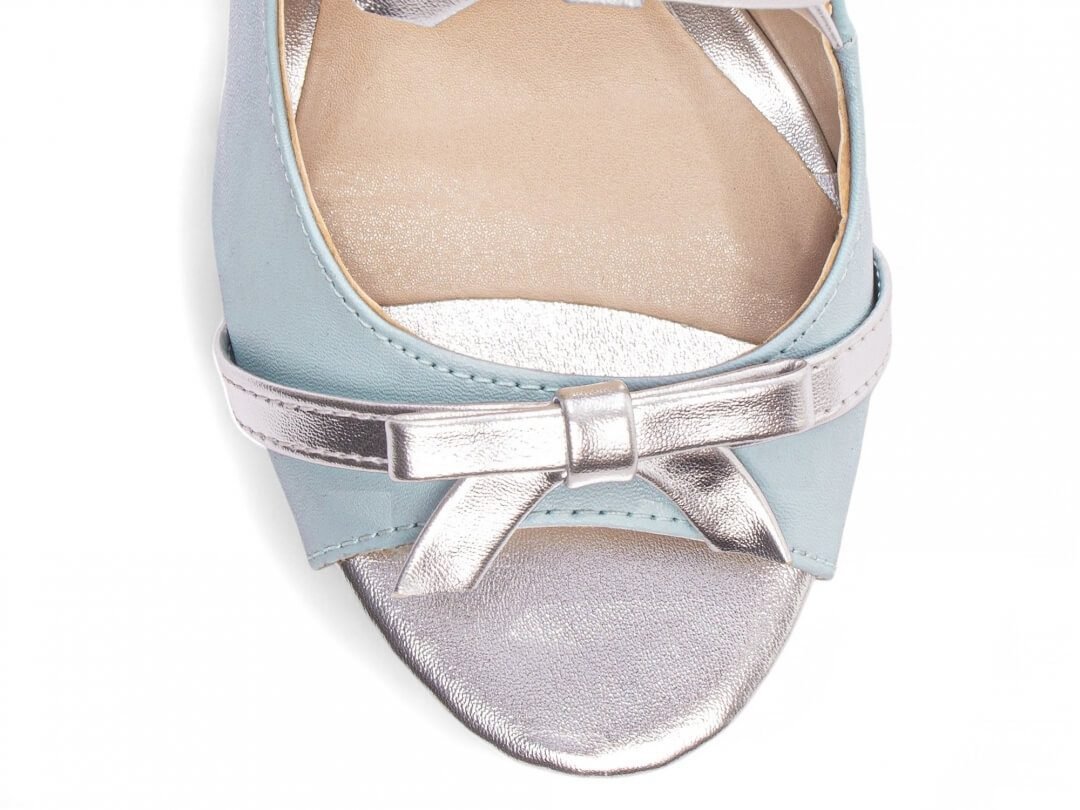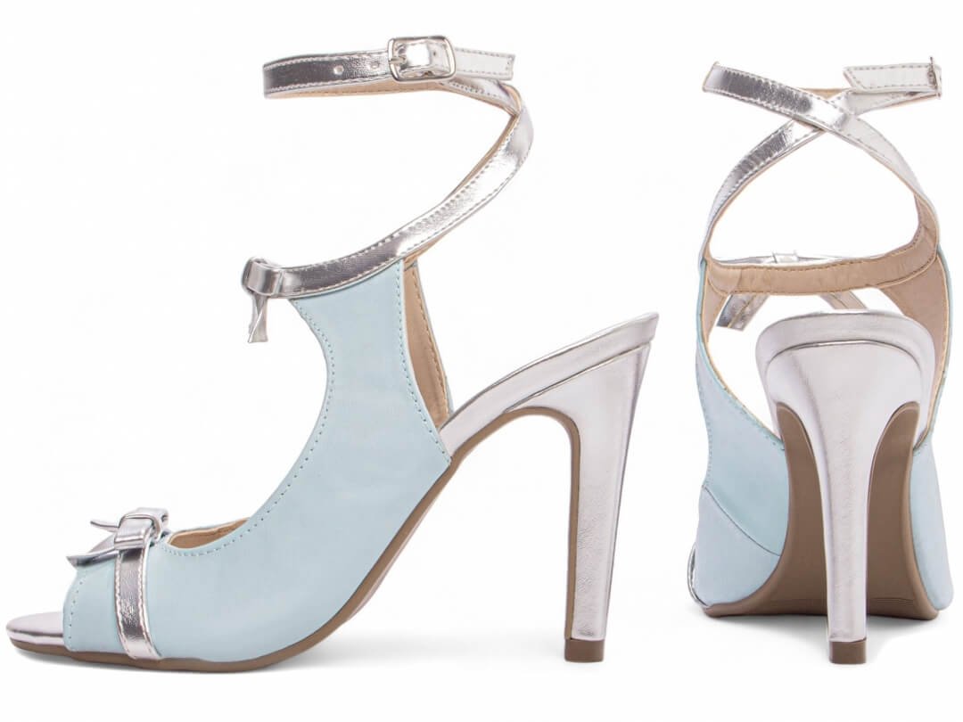 Palmilha: 8 mm de Espessura, Espuma em EVA, Revestida em Napa Metalizado Prata e Taloneira Napa Bege;