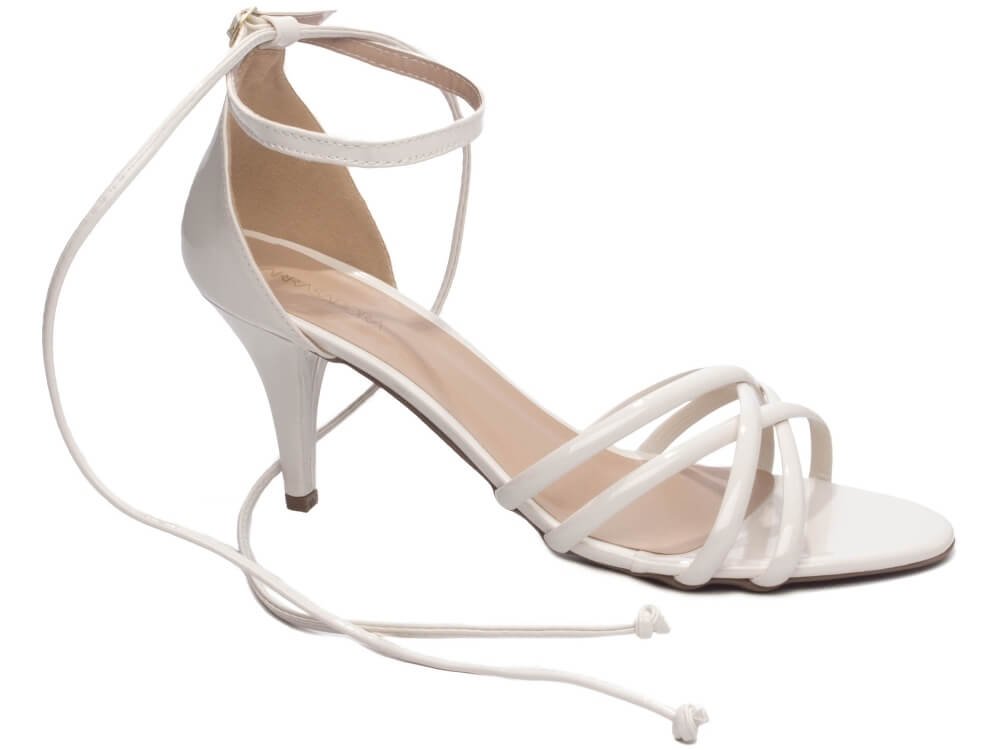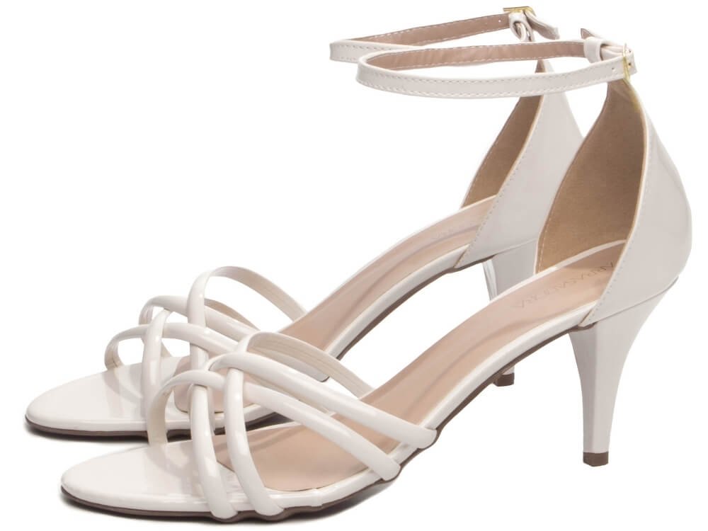 Enfeites: Fivela e Tiras Removíveis para Amarração na cor Verniz Off White;