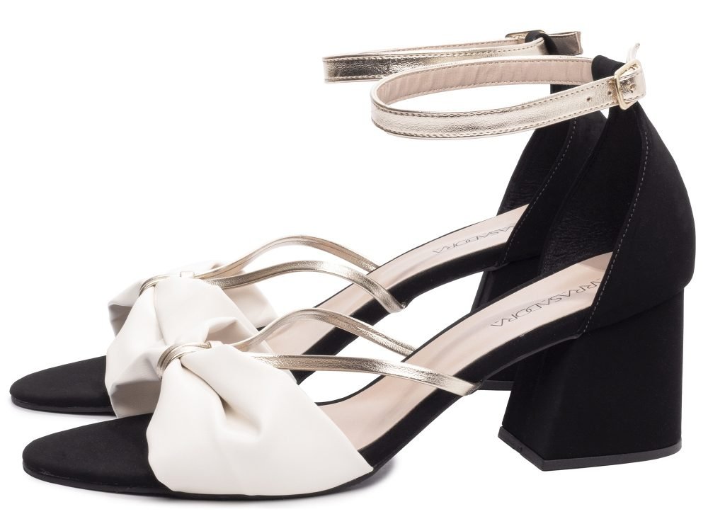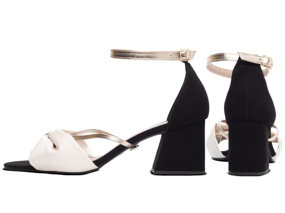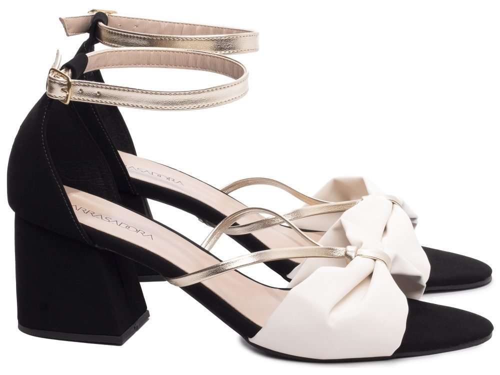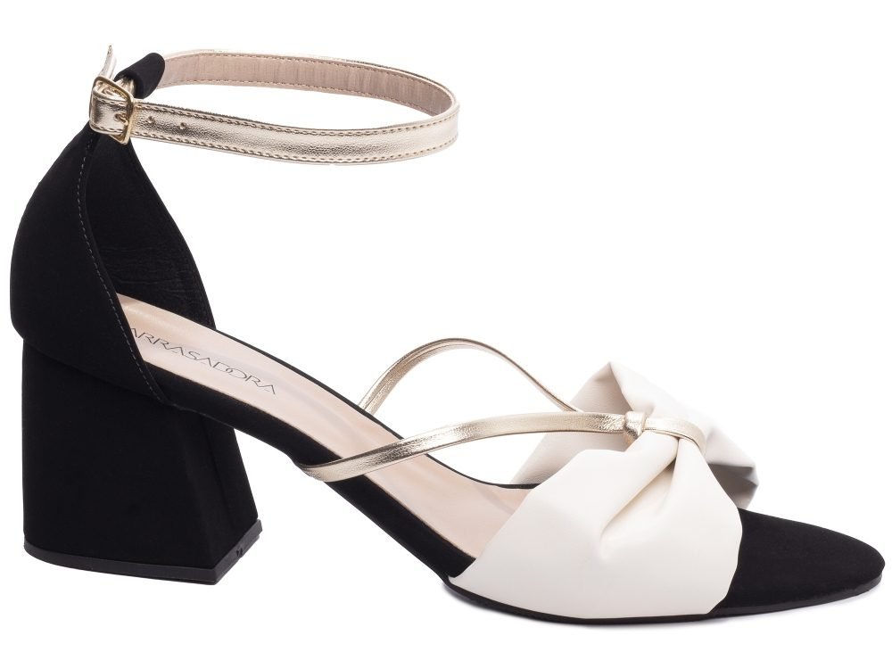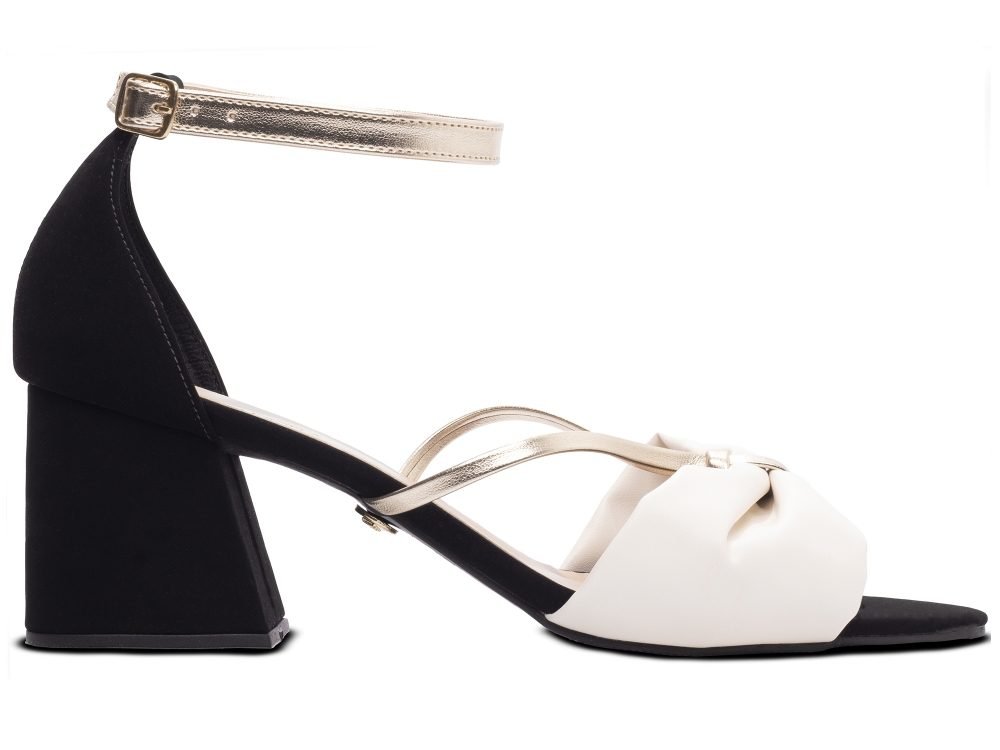 Material: Napa Off White, Nobuck Preto e Napa Metalizado Dourado;