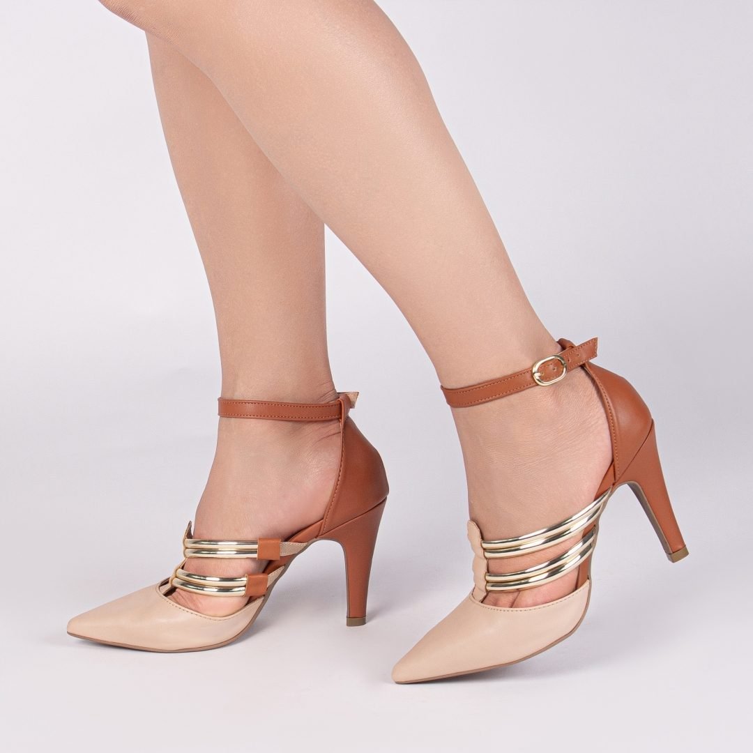 Salto: 9 cm de Altura Revestido em Napa Caramelo;