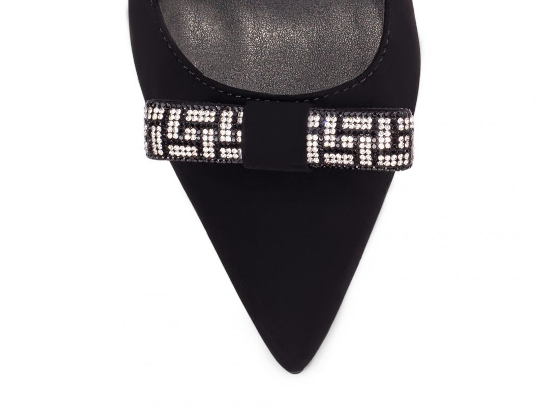 Enfeites: Laço Nobuck Preto com Strass.